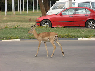 The conference started yesterday to much fanfare, including the Minister of Somesuch and a full marching band. They went on playing for close to 30 minutes, time that might have been better spent discussing library matters. I am not a Zambian so I don’t want to pretend to understand. Either way, I would wonder away occasionally from the solitary booth I was manning and wander outside for a second. The conference center is in the middle of the city, a city of over a million people. It looks rural, but it is not. The pictures I took were literally from the door of the conference center; I didn’t walk anywhere to take these photographs.